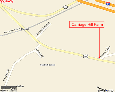 Feel free to contact us: (434) 296-2672 Email Form Carriage Hill Farm, 870 Carriage Trail Place, Keswick, VA 22947 � Carriage Hill Farm Contact the webmaster |